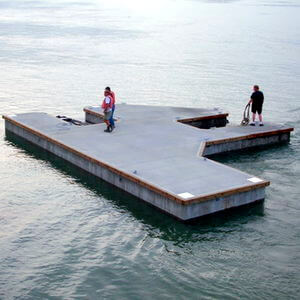 • Joining floating docks to stationary docks at marinas expands the boat-handling capacity.